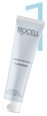 Švelnus veido prausiklis su pieno rūgštimi ir pantenoliu – BIOCELL CREAM-TO-FOAM CLEANSER